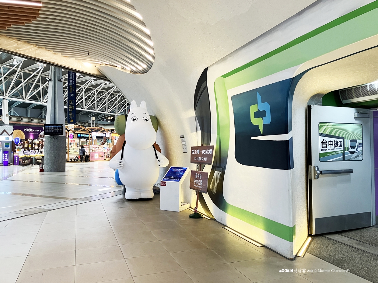 台中捷運公司說明,台中市政府今年攜手國際級IP「姆明一族」,以「幸福蜜馬 台中MOOMIN ON!」為主題,讓中台灣燈會引爆話題。不用等到燈會開幕,只要搭上捷運彩繪列車,就能被滿滿的幸福感包圍,車門與橫直幅海報皆佈滿可愛的姆明一族成員,當旅客踏入車廂,彷彿瞬間穿越至極光下的姆明谷。此外,捷運高鐵台中站也設置姆明特色裝置氣模,讓旅客一抵達台中,即感受到最甜蜜的迎賓驚喜。